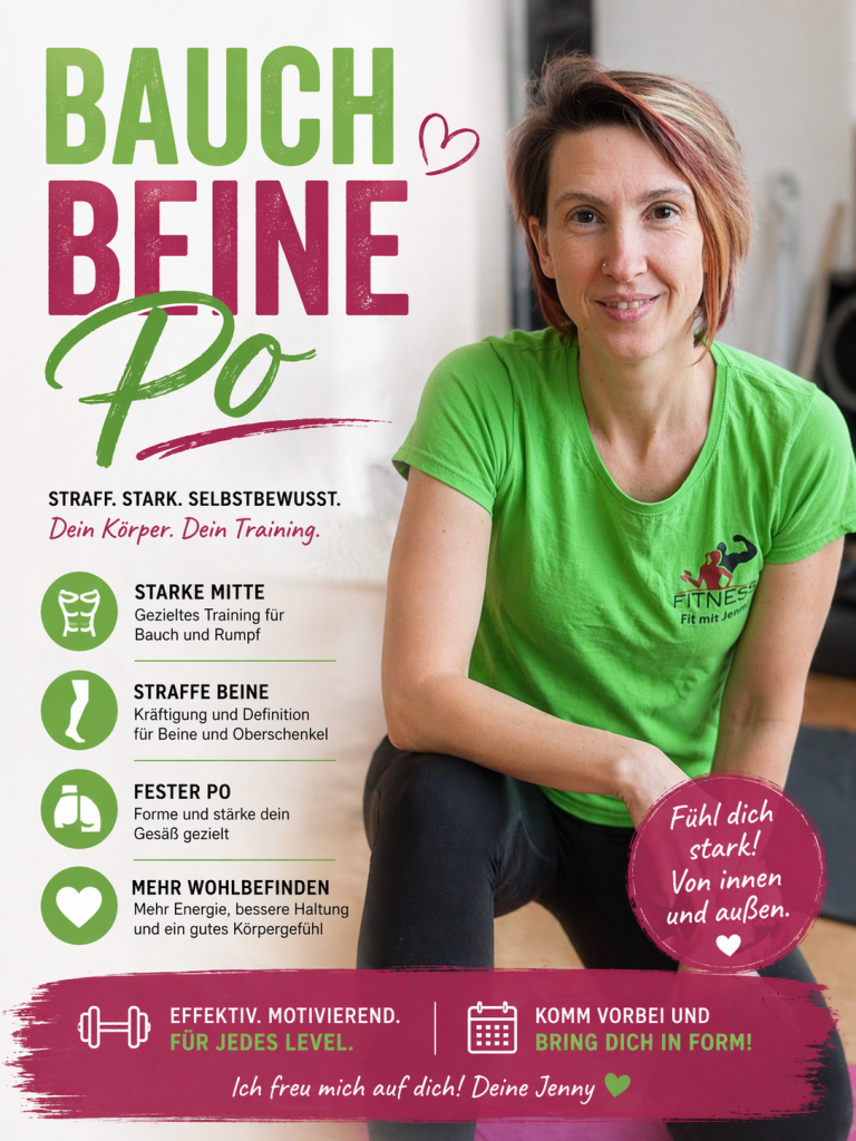 Im Bauch Beine Po Kurs erwartet sich ein effektives Ganzkörpertraining mit Fokus auf die Problemzonen. Durch abwechslungsreiche Übungen werden Bauch, Beine und Gesäß gezielt gekräftigt und geformt.